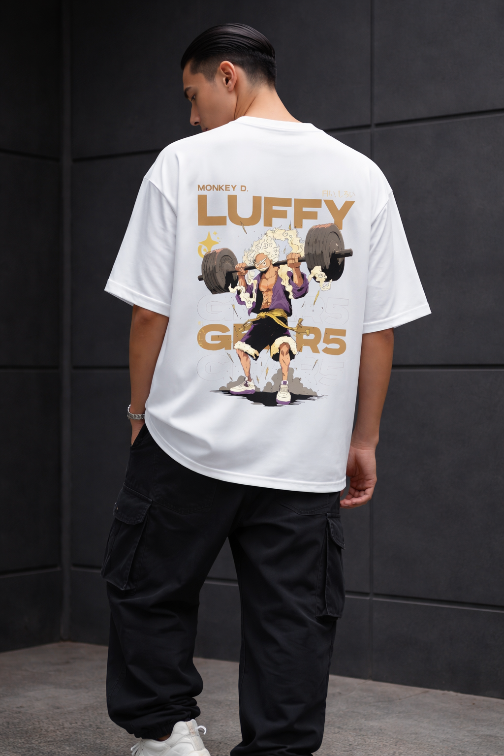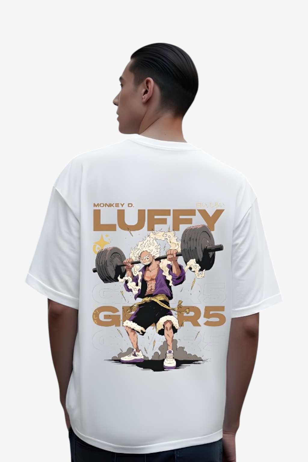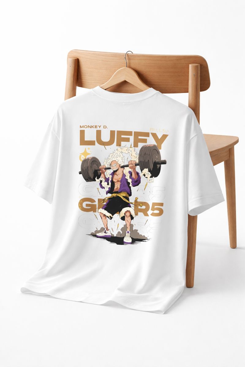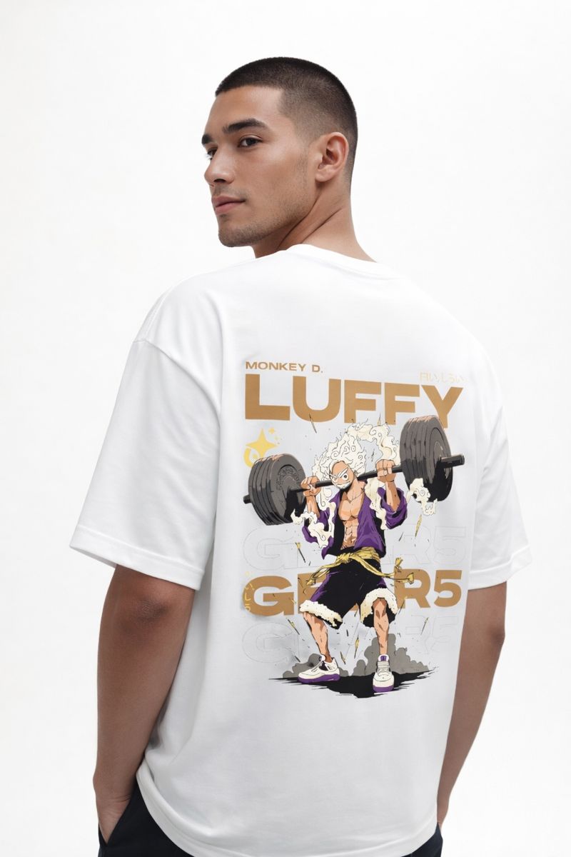 The Tierwear Monkey D. Luffy Gear 5 Oversized T-Shirt is inspired by iconic anime energy and modern streetwear culture. The back print showcases Monkey D. Luffy in his Gear 5 form, illustrated in a dynamic weightlifting pose that symbolizes strength, freedom, and rebellion. Clean typography and balanced color tones give the design a mature, high-impact look without feeling overdone. Crafted from breathable premium cotton with a relaxed oversized fit, this T-shirt is perfect for everyday wear, casual outings, and anime-inspired street styling.