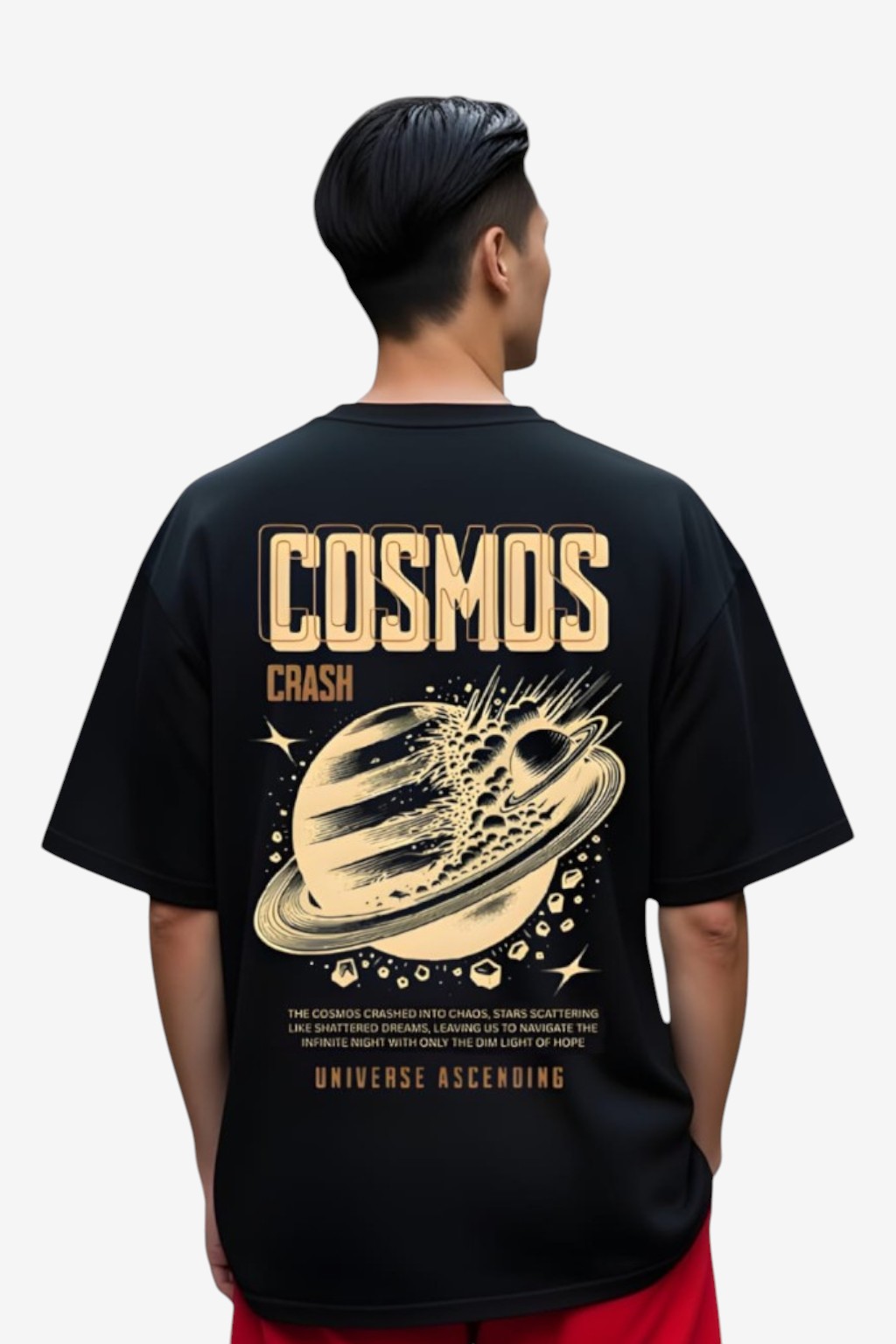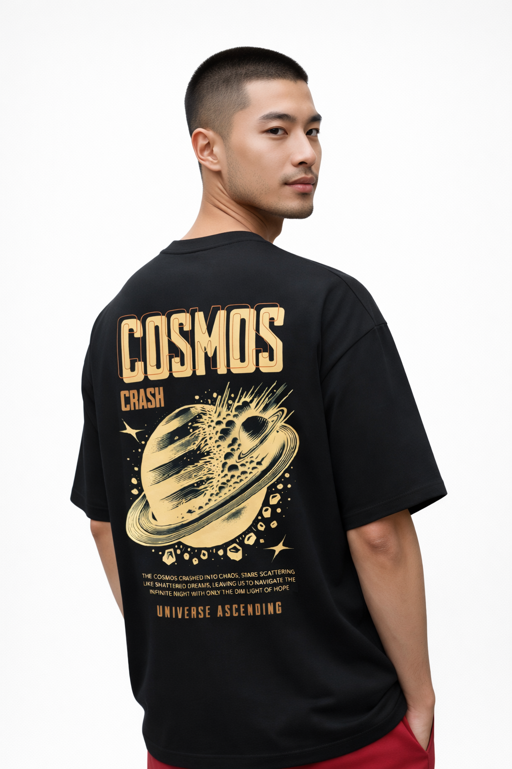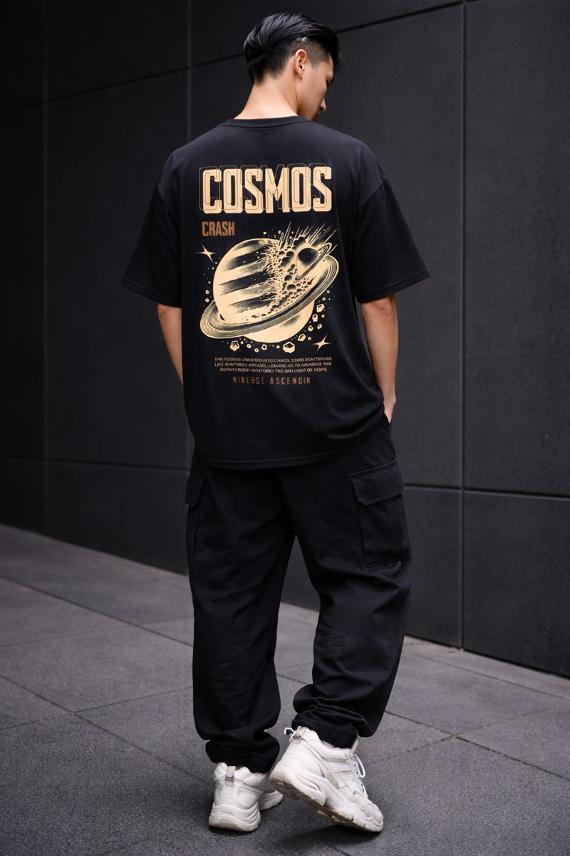 The Tierwear Cosmos Crash Oversized T-Shirt is inspired by cosmic chaos and futuristic streetwear aesthetics. The detailed planet explosion graphic with bold typography creates a strong visual impact, making this tee stand out without looking gimmicky. Crafted from breathable cotton with a relaxed oversized fit, it’s ideal for casual wear and modern street styling.