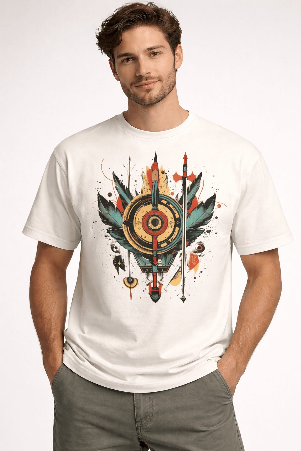 Lightweight 180 GSM cotton t-shirt featuring a bold tribal crest graphic, designed in a comfortable unisex regular fit for effortless everyday wear.