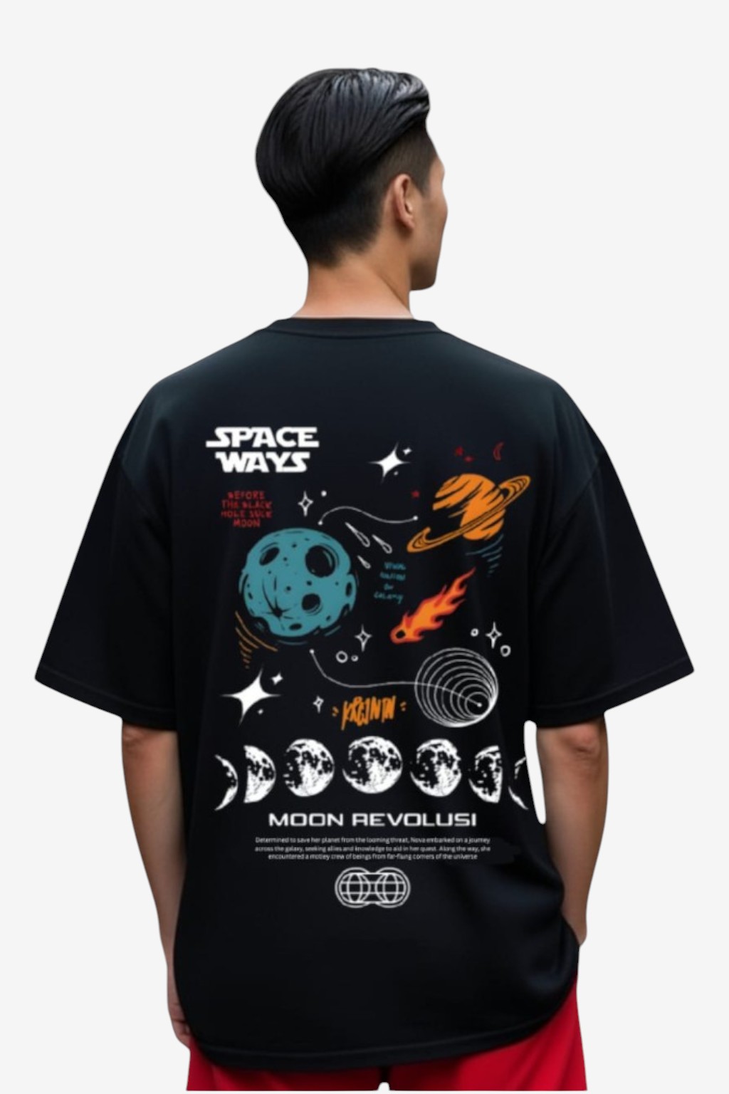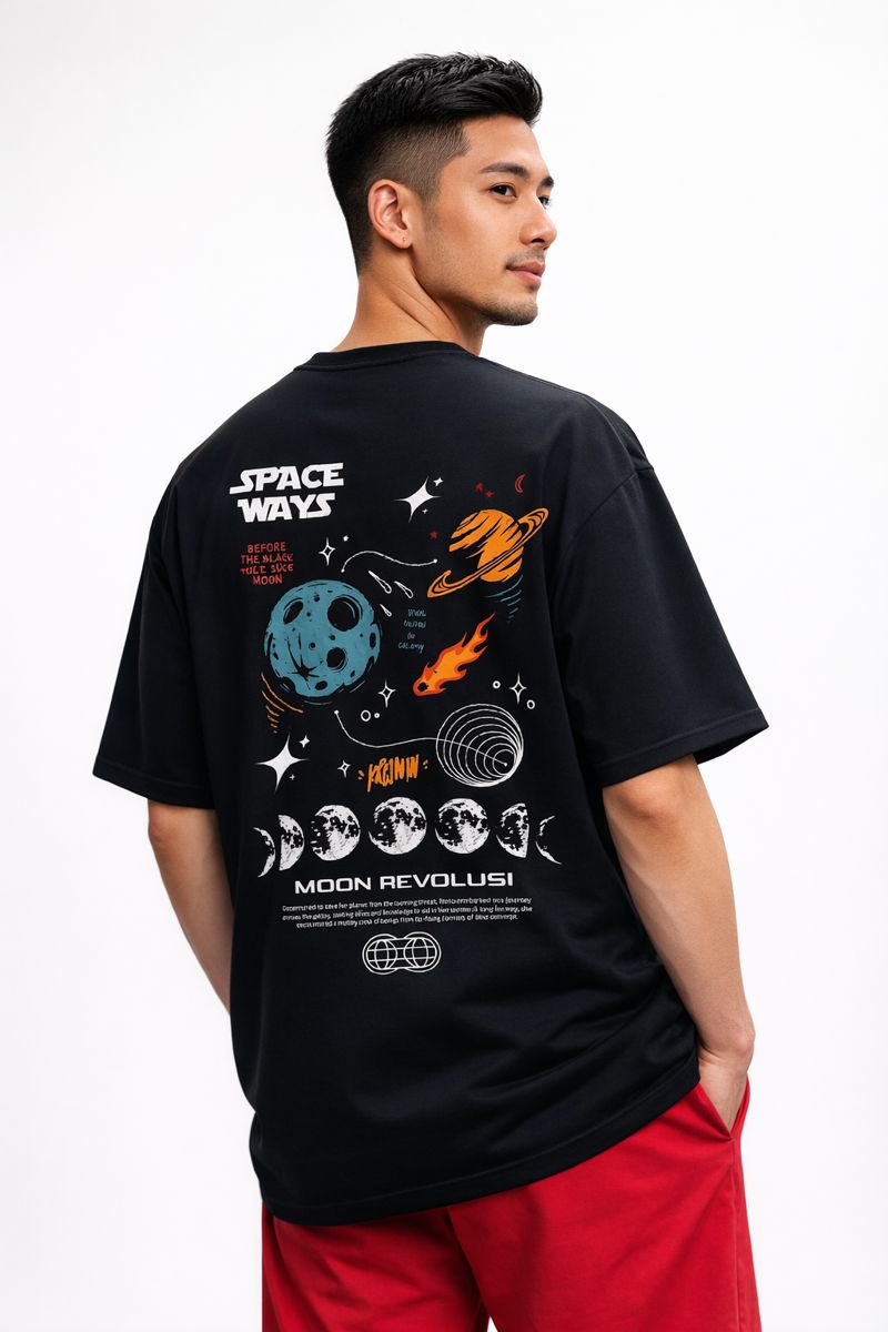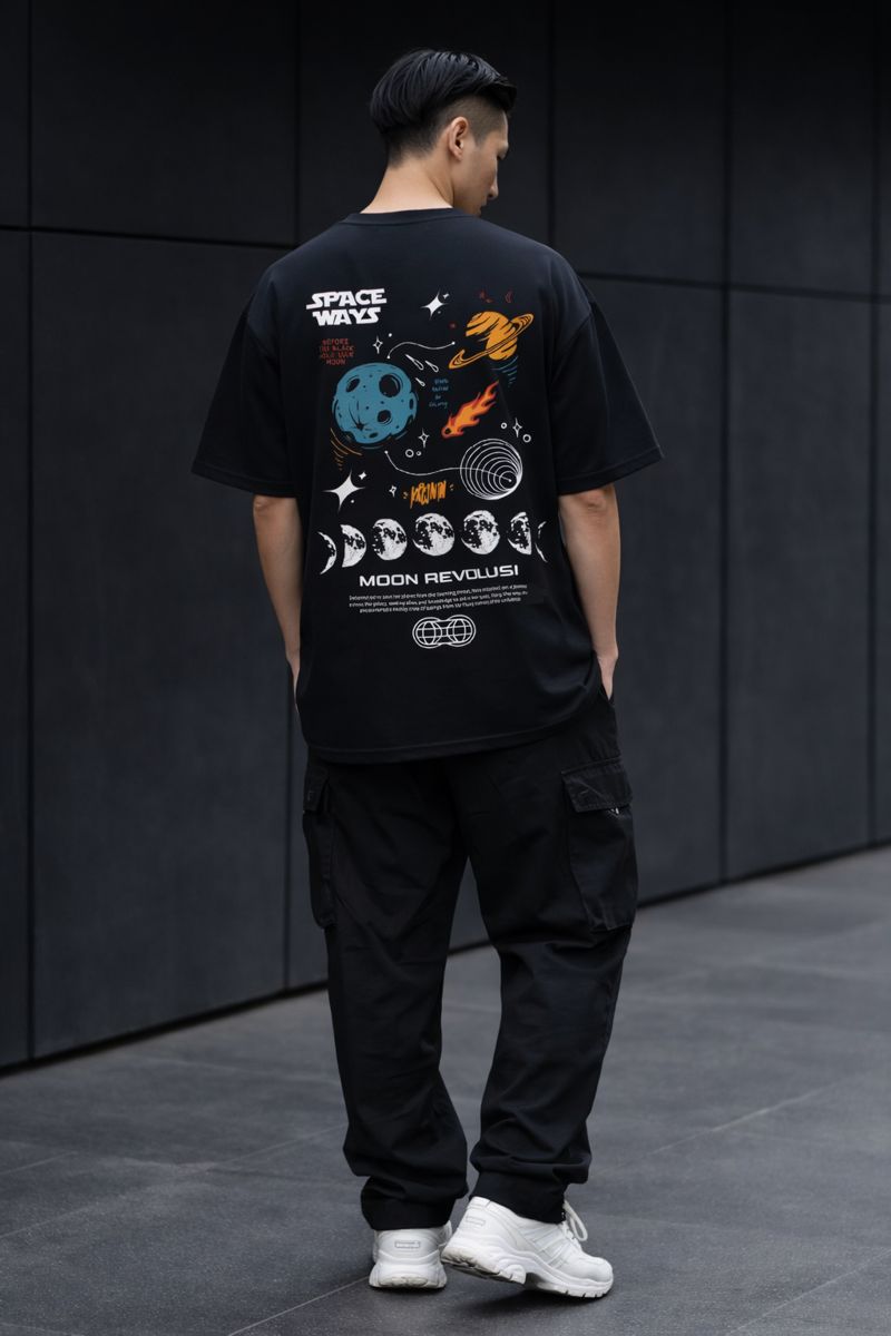 The Tierwear Space Ways Oversized T-Shirt is inspired by astronomy, cosmic travel, and futuristic streetwear aesthetics. The back print showcases planets, meteors, moon phases, and space elements arranged in a dynamic graphic layout. Made from breathable cotton with a relaxed oversized fit, this tee is ideal for casual wear and street styling without looking childish or overdesigned.